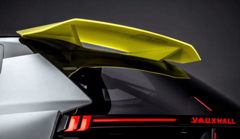 Концепт поєднує сучасну електричну естетику з атмосферою Group B ралі 80-х. Яскраві жовті елементи проходять крізь білий кузов, створюючи агресивний і динамічний вигляд. Спереду – унікальна форма з «візорним» носом та світловим логотипом Vauxhall у центрі.
