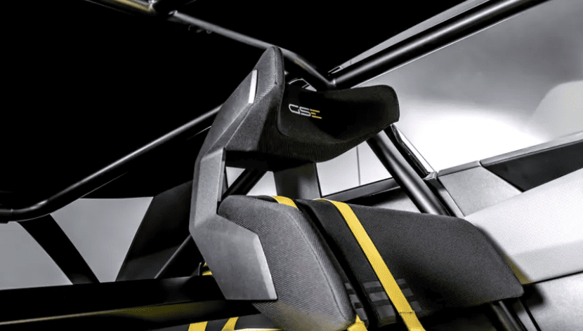 Всередині – справжній спорткар. Сидіння інтегровані в каркас безпеки, педалі регулюються замість крісла. Панель мінімалістична: інформація проектується на тканини з підсвічуванням. Є навіть режим Boost, який додає +80 к.с. на кілька секунд.