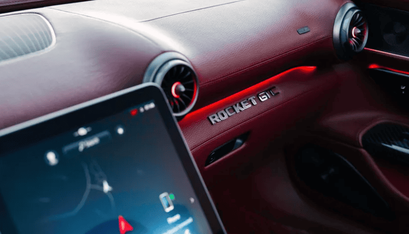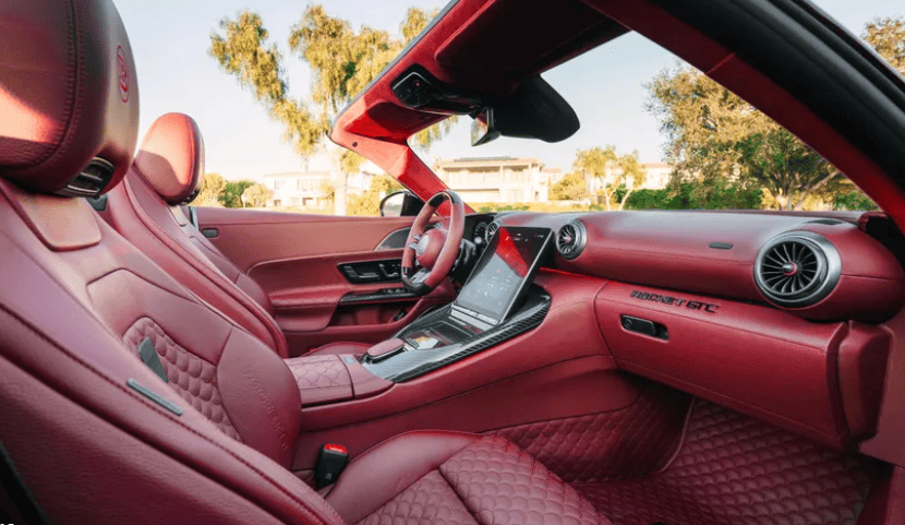 Салон прикрашено великою кількістю червоної шкіри. Навіть килимки зроблені з натуральної шкіри. Інтер’єр виконаний під спортивний, люксовий стиль з акцентом на ексклюзивність.