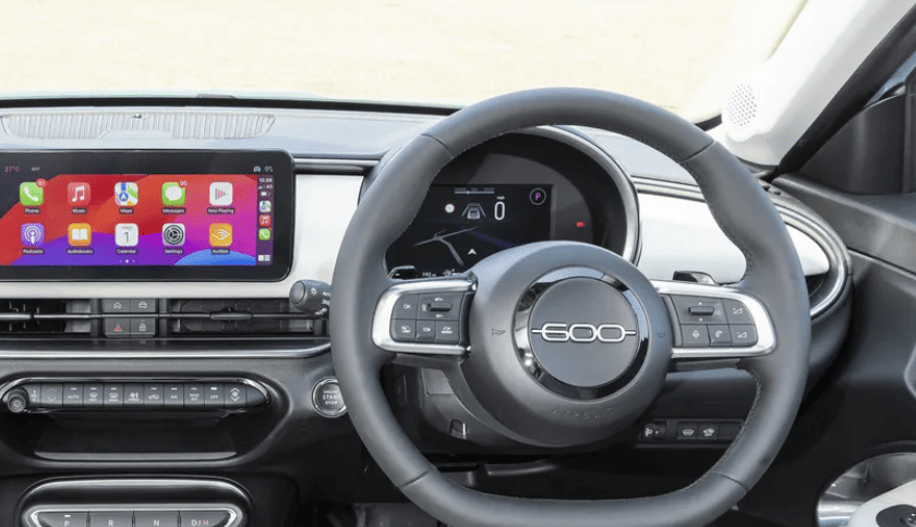 Всередині – суміш стилю Fiat 500 та Jeep Avenger. Є кілька цікавих деталей, наприклад, кришка центрального відділення у стилі планшета. Місця на другому ряду небагато, але у порівнянні з 500 – значний прогрес.