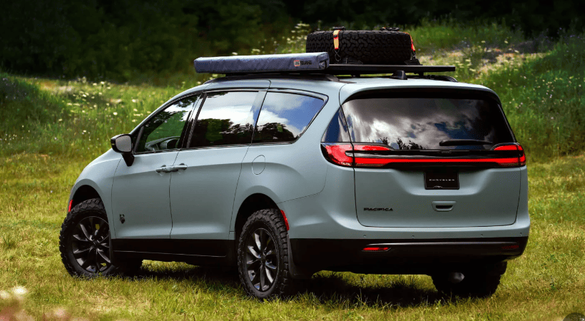 Новинка орієнтована на фанатів кемпінгу та мандрівок у стилі van-life. Pacifica отримала підняту підвіску: спереду кліренс збільшено на 70 мм, ззаду — на 64 мм. Автомобіль стоїть на 18-дюймових колесах з 31-дюймовими всюдихідними шинами BFGoodrich KO2.