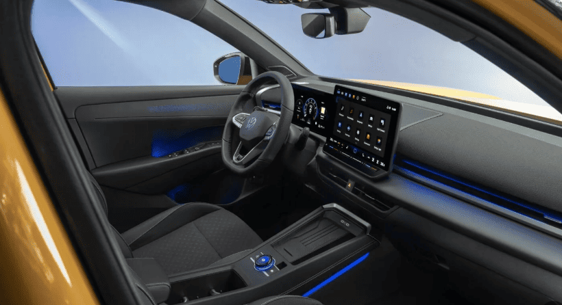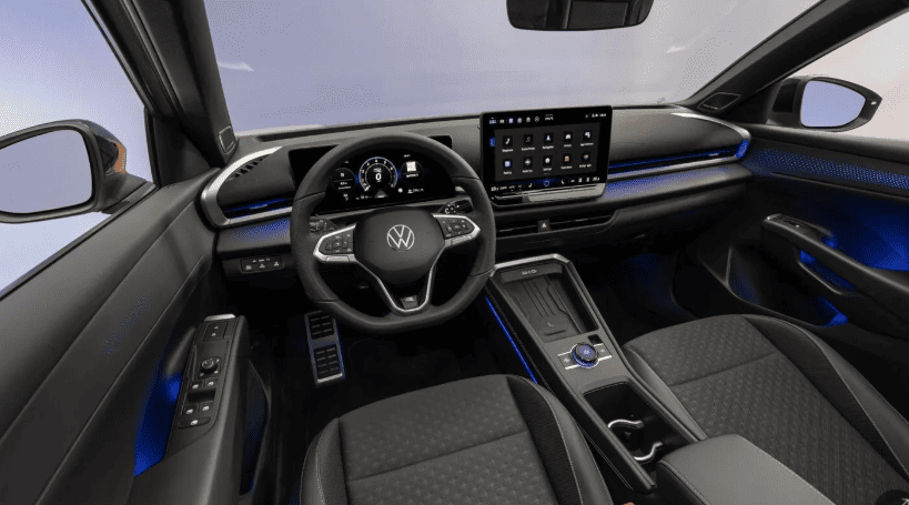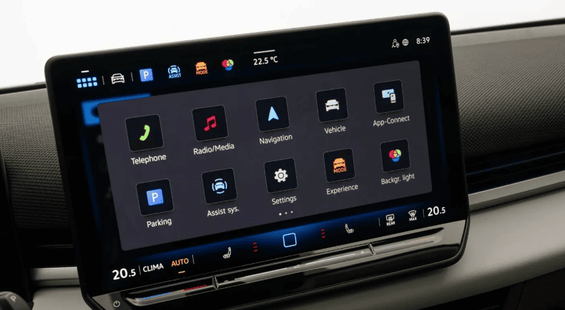 Центром панелі приладів є окремий сенсорний дисплей розміром 10,4 або 12,9 дюйма залежно від комплектації. Він поєднаний із 10-дюймовою цифровою панеллю приладів та опційним проєкційним дисплеєм (head-up display). Старі сенсорні повзунки для регулювання клімату та гучності залишилися під панеллю, що не дуже зручно. Однак на кермі є звичні кнопки, а на центральній консолі з’явився поворотний регулятор від Tiguan, за допомогою якого можна змінювати гучність, обирати режим руху та налаштовувати атмосферу без використання сенсорного екрана.
