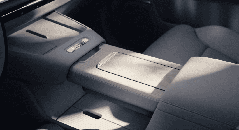 У салоні розташована “пливуча” центральна консоль із висувним блоком підсклянників. Для оздоблення використано дерев’яні вставки. Також передбачені бездротова зарядка для смартфонів та аудіосистема Harman Kardon.