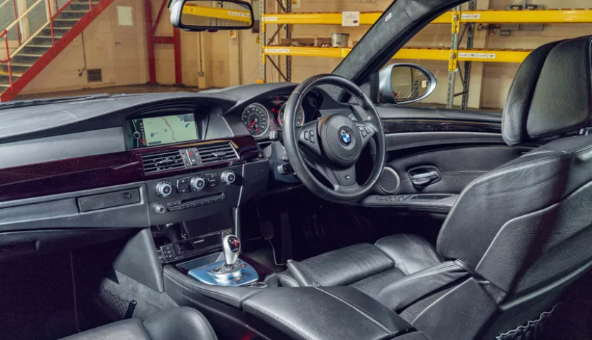 E60 M5: 5-літровий V10, 500 к.с., 0-100 км/год за 3,4 с, пік крутного моменту вище 6 000 обертів — звук і рев мотора неможливо забути.