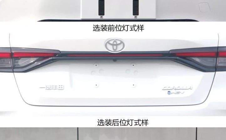 Ззаду змін менше, проте гібридна версія втратила традиційний синій логотип Toyota, а навколо ліхтарів з’явився темніший декор, що підкреслює преміальність і стиль автомобіля.