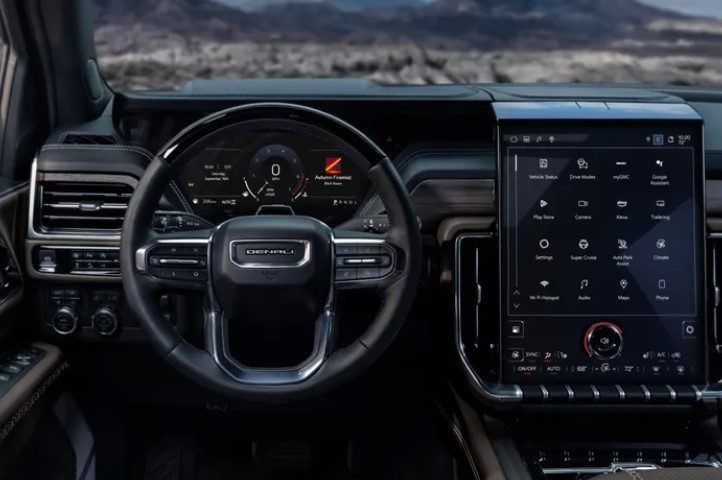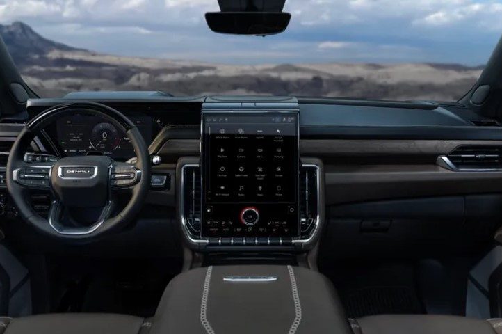 Салон Yukon виглядає так, ніби ви отримали кожну витрачену гривню. Відчуття преміумклас посилюють сидіння executive у другому ряду, мультимедійні екрани для пасажирів, величезний 16.8-дюймовий сенсорний дисплей і 11-дюймовий цифровий щиток водія. Хромованих елементів – скільки душа забажає.