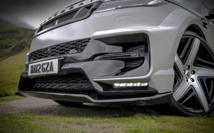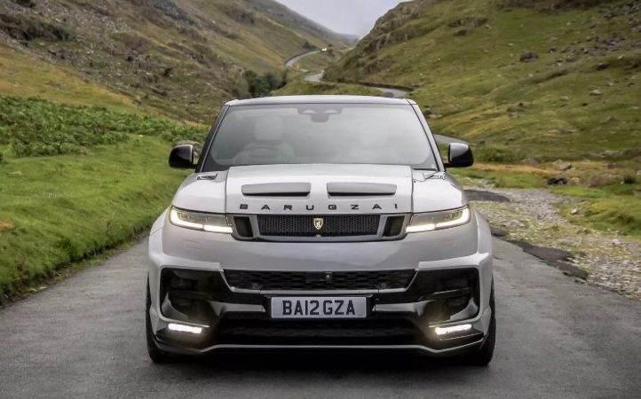Передня частина Range Rover Sport у виконанні Barugzai стає справжнім шоу. Тюнер замінив стандартний шильдик на власний логотип, а капот отримав нову форму з інтегрованими вентиляційними отворами. SUV оснастили трисекційною решіткою, масивнішим бампером із додатковими LED-лампами, спліттером і глянцевими чорними вставками, які поєднують великі повітрозабірники.