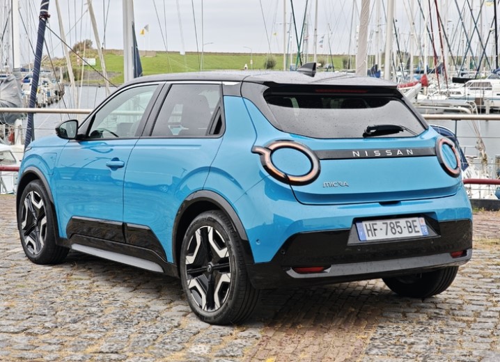 Позаду Micra виглядає ширше за R5, з круглими ліхтарями, невеликим склом, масивним спойлером і «полегшеним» бампером із глянцевими вставками. Пластикові деталі глянцеві навіть у базі, а колеса — до 18 дюймів; ковпаки виглядають як литі диски.