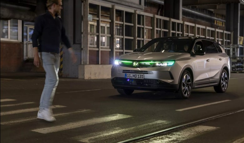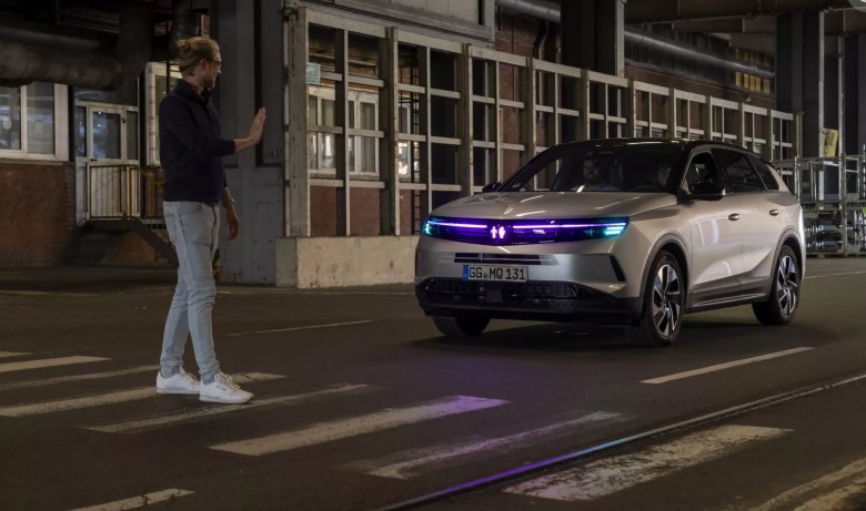Якщо на шляху з’являється пішохід, автомобіль починає гальмувати, а фари змінюють колір з білого на малиновий. До того ж маленький екран на передній решітці, де зазвичай блимає емблема Opel, показує знак уваги або пішохода з жестом «стоп».