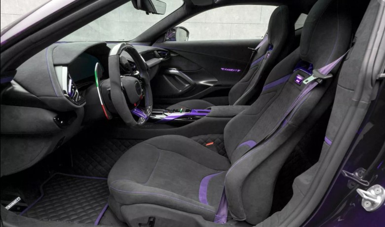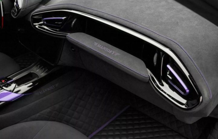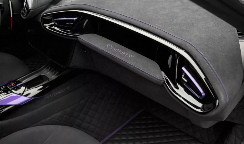 Салон – окрема історія. Його повністю перешили сірою алькантарою з унікальною строчкою. Двері отримали підсвітку, а для найвибагливіших пропонують будь-який відтінок шкіри. Карбонові вставки, алюмінієві педалі та килимки з фірмовою вишивкою Mansory створюють відчуття індивідуального артоб’єкта на колесах.