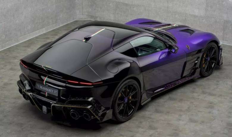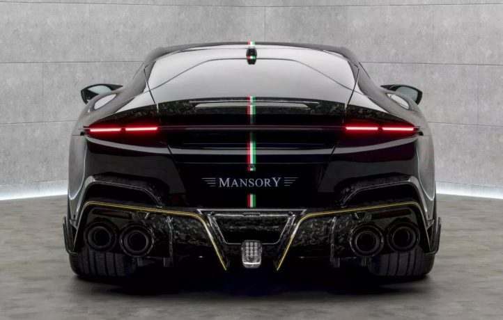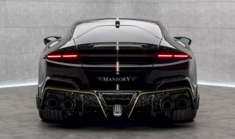 Задня частина Mansory Equestre залишилася без масивного антикрила. Проте тут з’явився подовжений спойлер над тонкими LED-ліхтарями. Найбільше ж вражає дифузор із кованого карбону – він більший за стандартний, із численними плавниками та додатковими отворами. А ще – гальмівний вогонь у стилі Формули-1 і чотири величезні патрубки вихлопу, які виглядають наче артилерія суперкара.