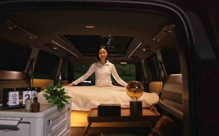 Не поспішайте уявляти собі тент. Насправді йдеться про панорамний скляний дах, який підіймається на 36 см вгору, даруючи більше простору над другим рядом сидінь. Це не просто ефектно — це зручно. Передні крісла можна скласти, а підголівники опустити натисканням кнопки, перетворивши салон на справжню зону відпочинку.