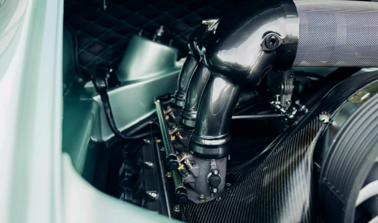 Найбільша родзинка цієї машини – двигун. Це повітряно-охолоджуваний 3,8-літровий опозитний шестициліндровий мотор із незалежними дросельними заслінками. Потужність – 407 к.с. при 7 600 об/хв і 397 Нм крутного моменту. Хоча у новому 911 GT3 мотор на 4,0 літри має на 100 к.с. більше, Theon важить лише 1 150 кг, що майже на 312 кг легше. Результат – неймовірне співвідношення потужності та ваги, яке реально відчувається на дорозі.