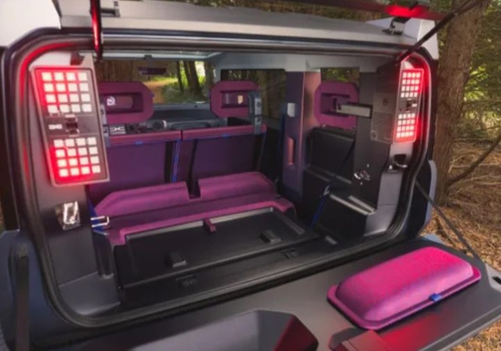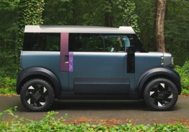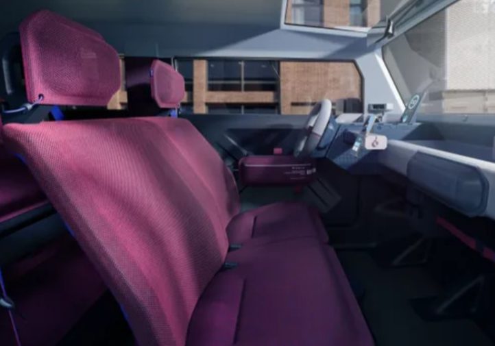 Передні та задні двері відкриваються великими панелями, ручки замінені тканинними ремінцями. Легкий передній диван, мінімальні підголівники, базові подушки безпеки. В авто є система «YouClip» з 11 точками кріплення для аксесуарів.