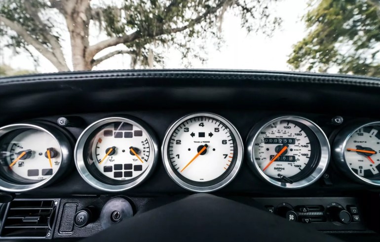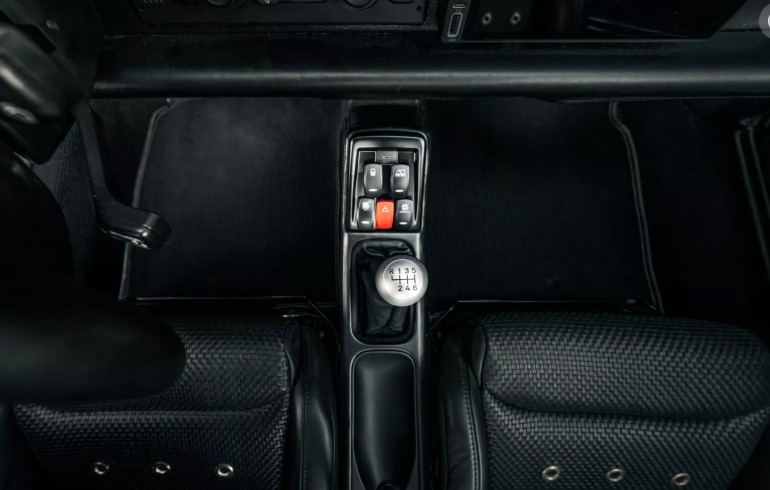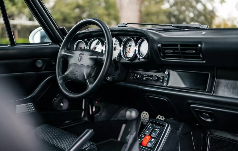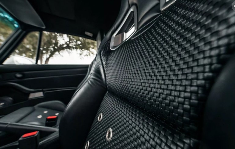 Усередині цього рестомодженого Porsche 911 — справжній витвір мистецтва. Нові сидіння Recaro Cross Sportster CS у чорній шкірі з металевими вставками та фірмовим тканинним плетінням створюють відчуття преміумклас, але без надмірного пафосу.
