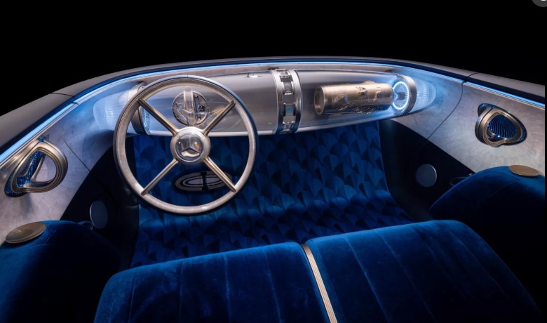 Якщо зовнішність Vision Iconic захоплює, то салон просто вражає. Mercedes натхненний рухом Art Deco, створюючи атмосферу «лаунж-комфорту» та поєднуючи гіпераналогову розкіш із сучасними цифровими технологіями.