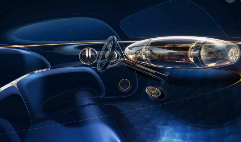 Концепт отримав кругле рульове колесо з чотирма спицями та прозору панель приладів у формі «Цепеліну». Приладова панель поєднує анімовані аналогові циферблати, які нагадують дорогі хронографи, та чотири годинники у центрі торпеди, один з яких є «домом» для AI-компаньйона.