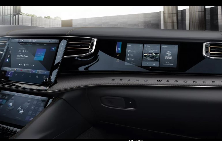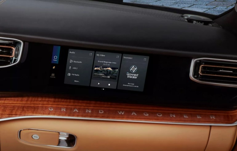 Сідаючи за кермо оновленого Grand Wagoneer, водій відразу відчуває себе у центрі преміального комфорту. Шкіряне кермо з підігрівом та електрорегулюванням, перед очима — цифрова панель 10,25 дюйма та 12-дюймовий сенсорний екран Uconnect5.