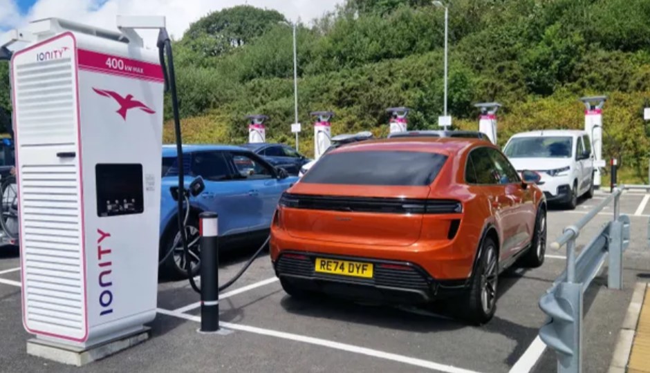 На шляху до Ionity Bodmin батарея показувала 35% заряду. Через 19 хвилин зарядки — уже 80%. Жодних черг, швидко, чітко, як у Porsche й личить. Єдине “але” — повільні зарядні станції біля готелів. 7 кВт і постійна черга — не те, що хочеться бачити у відпустці.