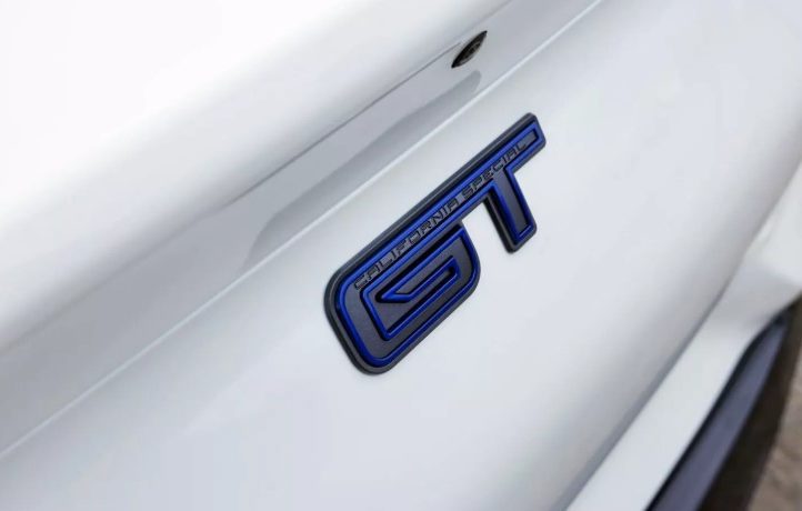 California Special отримав легке оновлення зовнішності. Машину легко впізнати за підсвіченим емблемою коня Rave Blue та спеціальними 20-дюймовими колесами з комбінованим сірим та чорним забарвленням.