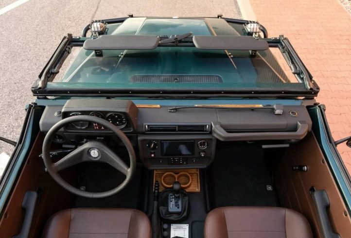Всередині — спортивні сидіння у стилі “ковшів”, оббиті коричневою шкірою. Для справжніх фанатів відкритого простору лобове скло можна відкинути вперед, щоб відчути вітер на повну.