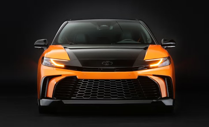 Хоч потужність не змінилася, вигляд Camry GT-S став значно ефектнішим. Насичене забарвлення «Inferno Flare» контрастує з чорним дахом і частково затемненим капотом. Цей чорний відтінок переходить і на декоративну смугу над решіткою радіатора, яка з’єднує фари.