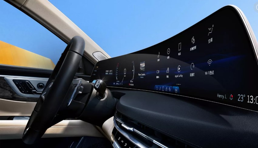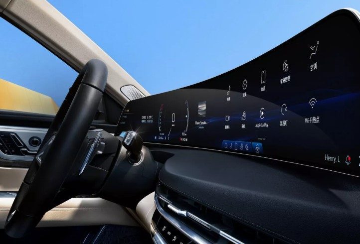 Всередині Cadillac CT6 одразу привертає увагу великим вигнутим 33-дюймовим дисплеєм з роздільною здатністю 9K.