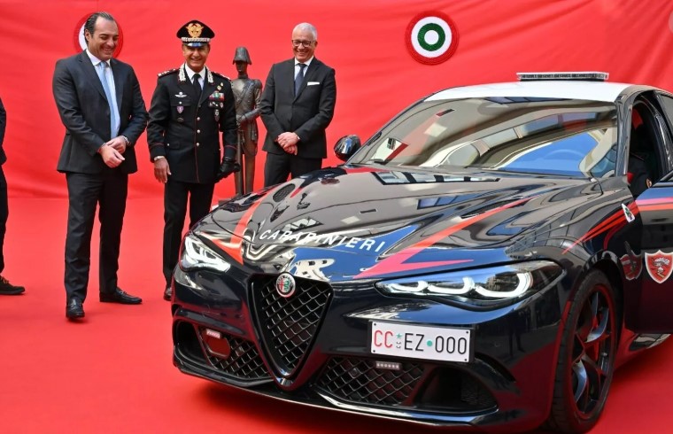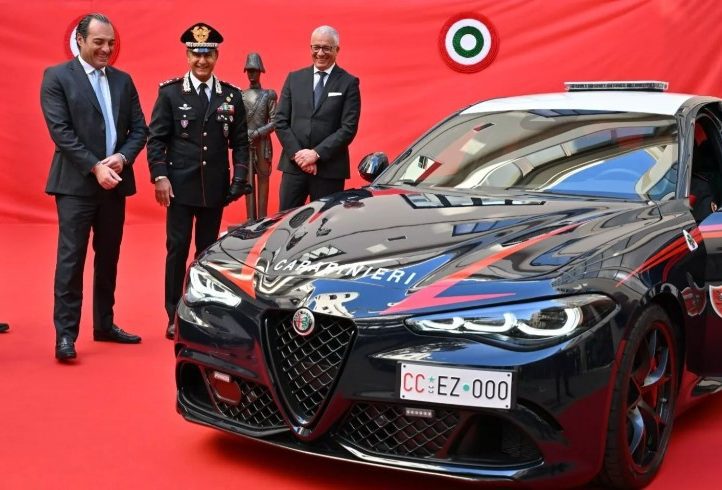 Разом із Maserati, карабінерія отримала нову Alfa Romeo Giulia Quadrifoglio. Вона оснащена дволітровим турбованим V6 об’ємом 2,9 літра, потужністю 513 к.с. Машину доповнюють спортивна підвіска, механічний блокувальний диференціал задніх коліс та карбонові деталі.