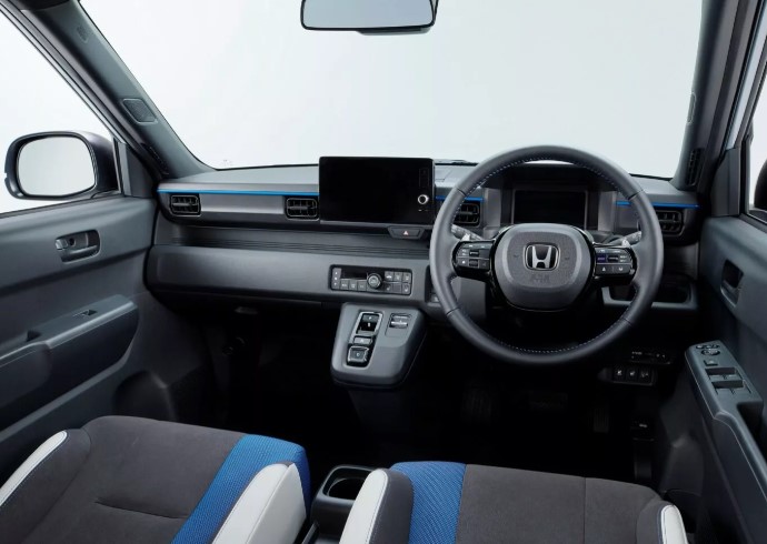 Усередині Honda Super-One Prototype — атмосфера спортивного мінімалізму. Сидіння виконані у чорно-біло-сірому поєднанні, що додає інтер’єру динаміки. Попереду водія — компактна цифрова панель приладів, а в центрі — великий мультимедійний дисплей, схожий на ті, що встановлюють у сучасних моделях Honda.