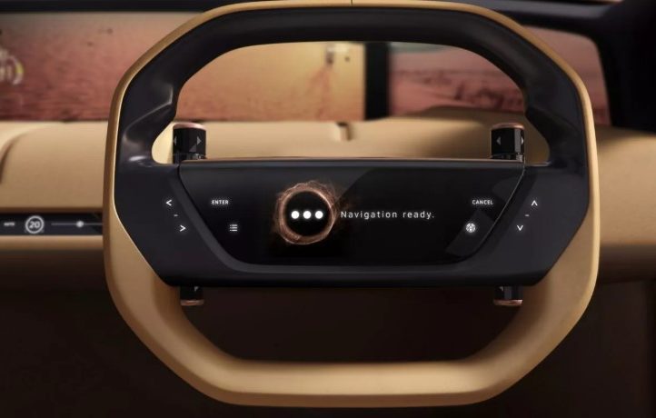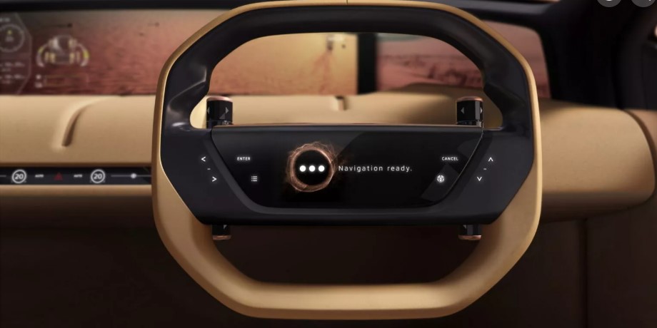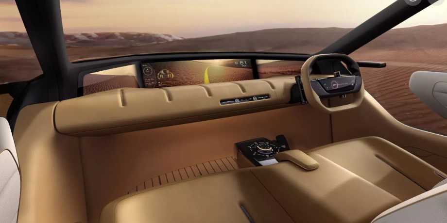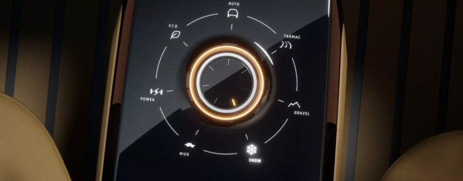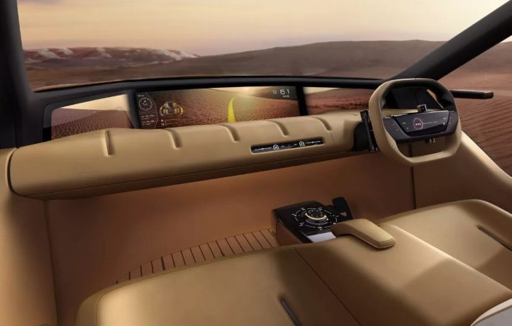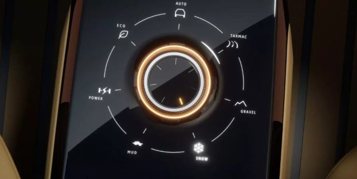 Над нею – екранна панель “під стелю” з трьома дисплеями, а четвертий екран розташований на футуристичному кермі. На центральній консолі – поворотний регулятор режимів руху (Eco, Auto, Tarmac, Gravel, Snow, Mud, Power). Крім того, штучний інтелект Co-Driver може порадити оптимальний режим під умови дороги.
