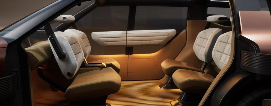 Всередині три ряди сидінь на шість пасажирів і повністю пласка підлога. Передні сидіння можуть повертатися назад, створюючи затишну кімнату для відпочинку. Панель приладів виконана в єдиному стилі з матеріалом оббивки сидінь, виглядає чисто та сучасно.
