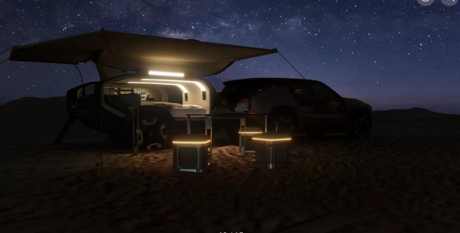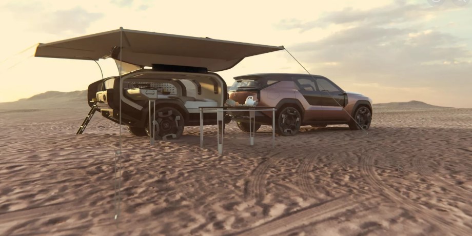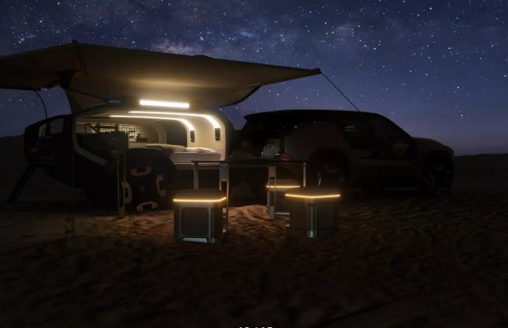 Концепт комплектується краплеподібним трейлером з великими колесами та високим кліренсом. Усередині: велике двоспальне ліжко, зони для зберігання, мінікухня, атмосферне підсвічування з легким sci-fi ефектом і навіть душова кабіна.