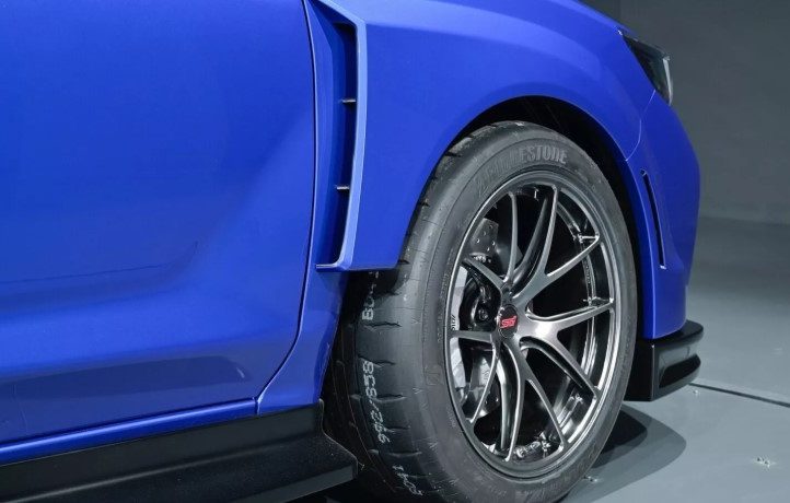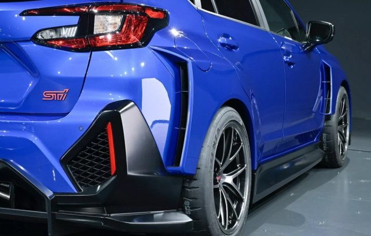 Модель нагадує Impreza, але в більш агресивному, “зарядженому” виконанні STI. Автомобіль отримав розширені крила з вентиляційними отворами, повітрозабірник на капоті, нові бампери з великими повітрозабірниками та решітку з червоною смугою. Ззаду — величезне антикрило і дифузор складної форми, без видимих вихлопних труб.