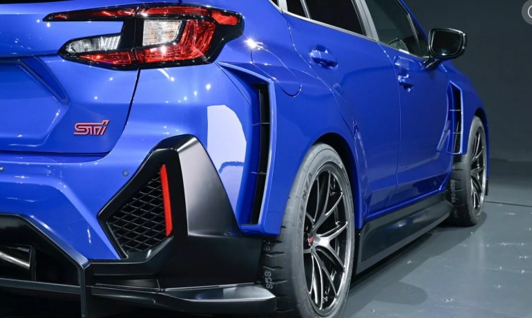 Модель нагадує Impreza, але в більш агресивному, “зарядженому” виконанні STI. Автомобіль отримав розширені крила з вентиляційними отворами, повітрозабірник на капоті, нові бампери з великими повітрозабірниками та решітку з червоною смугою. Ззаду — величезне антикрило і дифузор складної форми, без видимих вихлопних труб.