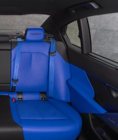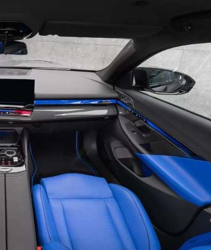 Жоден проєкт Mansory не обходиться без переробленого інтер’єру. Цього разу в салоні з’явилась яскрава синя шкіра, що покриває сидіння та частину дверей. Її контрастує чорна шкіра, яка додає відчуття спортивності. Як завжди у Mansory — жодної скромності, але цього разу все ж трохи стриманіше, ніж зазвичай.