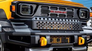 Демонстраційна версія оснащена литими дисками, позашляховими шинами та заниженими пружинами, які опускають кузов на 38 мм.
