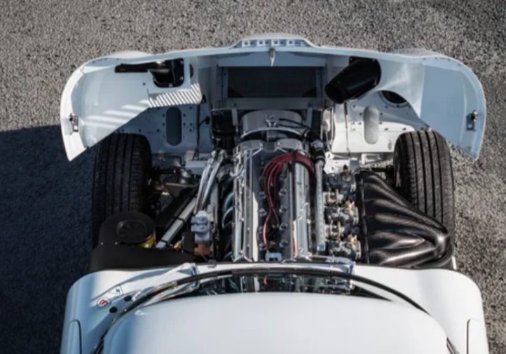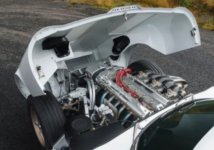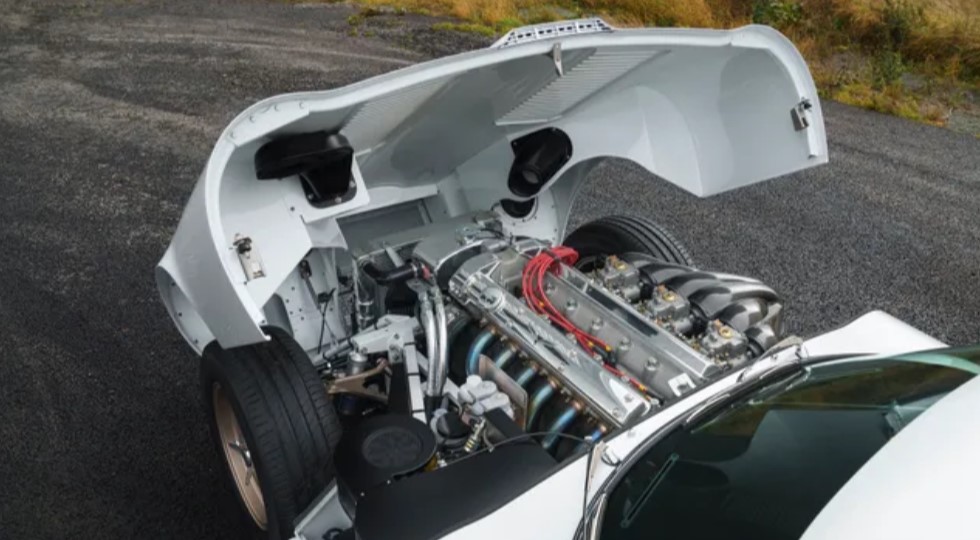 Під капотом — серйозно оновлений 4,7-літровий рядний шестициліндровий двигун з алюмінію. Він отримав титанові шатуни, головку блоку з широким кутом і три карбюратори Weber. Коробка передач має магнієвий корпус, а вихлопна система виготовлена з титану та інконелю. У результаті – понад 430 кінських сил на тонну. Вражає, правда?