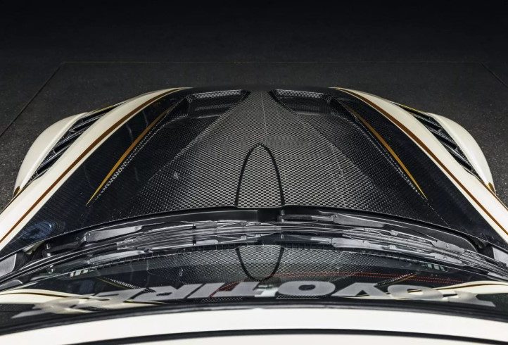 Кузов BP25 вкритий фарбою Lamborghini Balloon White — розкішним перламутровим білим відтінком. На тлі цього сяють золоті графічні елементи та відкриті карбонові деталі з червоними акцентами. Перегонові дзеркала зроблені з карбону та магнію, а задні ліхтарі отримали індивідуальні LED-вставки.