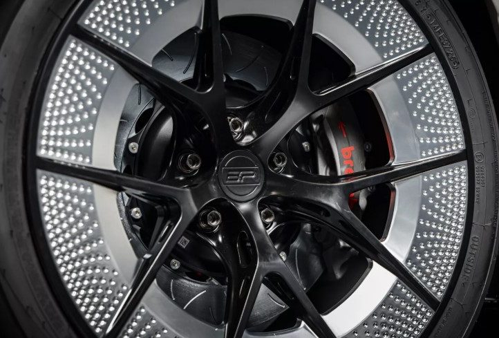 Особливу увагу привертають 19-дюймові диски BP-RW Evolution, створені за мотивами традиційної японської техніки обробки металу. Вони не лише виглядають вражаюче, а й приховують потужні гальма Brembo Pista. Шини — з високим рівнем зчеплення, тож авто впевнено тримається дороги.