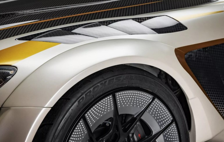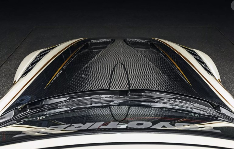 Кузов BP25 вкритий фарбою Lamborghini Balloon White — розкішним перламутровим білим відтінком. На тлі цього сяють золоті графічні елементи та відкриті карбонові деталі з червоними акцентами. Перегонові дзеркала зроблені з карбону та магнію, а задні ліхтарі отримали індивідуальні LED-вставки.