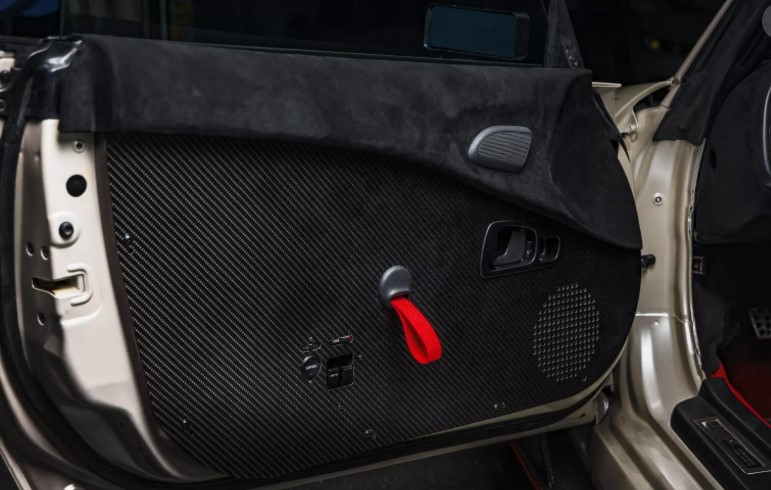 Усередині BP25 відчувається дух перегонів. Тут — кермо Mugen із замшею, спортивні сидіння Recaro RS-G з багатоточковими пасами безпеки та титановий важіль перемикання ARC. Дрібниці теж говорять про увагу до деталей — кнопка сигналу від NSX-R і оббивка з алькантари з червоною строчкою створюють атмосферу справжнього спорткара.