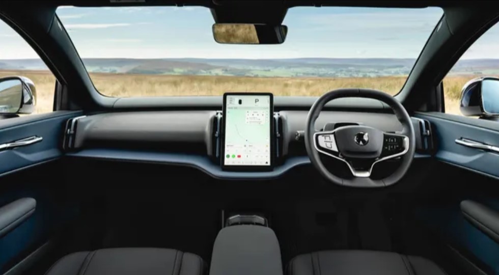 Інтер’єр залишається повністю керованим через центральний екран — навіть швидкість показується там. Але це зроблено не просто заради дизайну. Симетричне компонування дозволяє створювати автомобілі як з лівим, так і з правим кермом майже з однакових деталей.