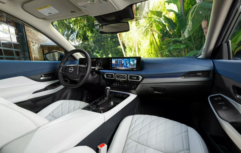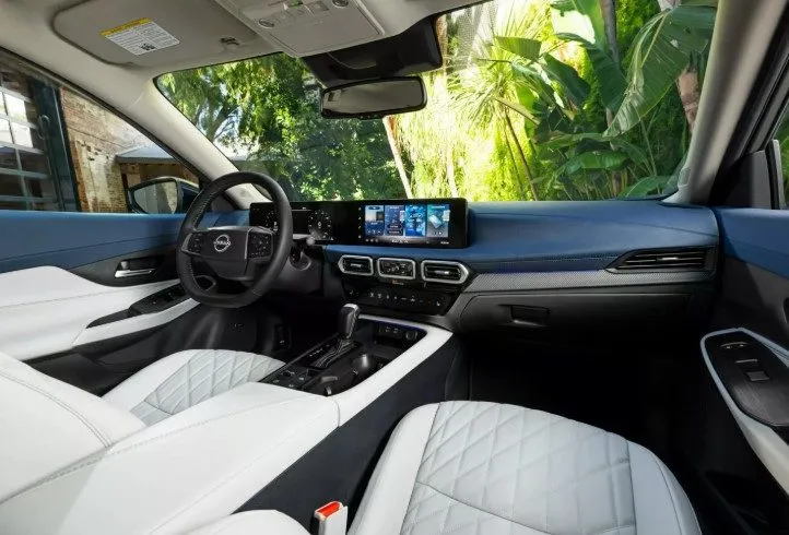 Sentra SV вирізняється 16-дюймовими легкосплавними дисками та покращеним оздобленням салону. Усередині з’явилася 12,3-дюймова цифрова панель приладів, автоматичний клімат-контроль і навіть сонцезахисні козирки з висувними секціями.