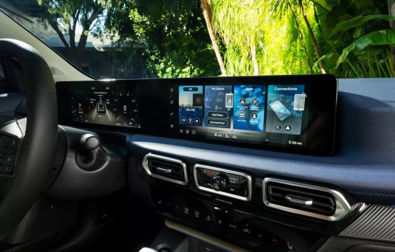 Салон — простий, але продуманий. У ньому встановлено 7-дюймовий екран приладової панелі та 12,3-дюймову мультимедійну систему з підтримкою бездротових Android Auto та Apple CarPlay.