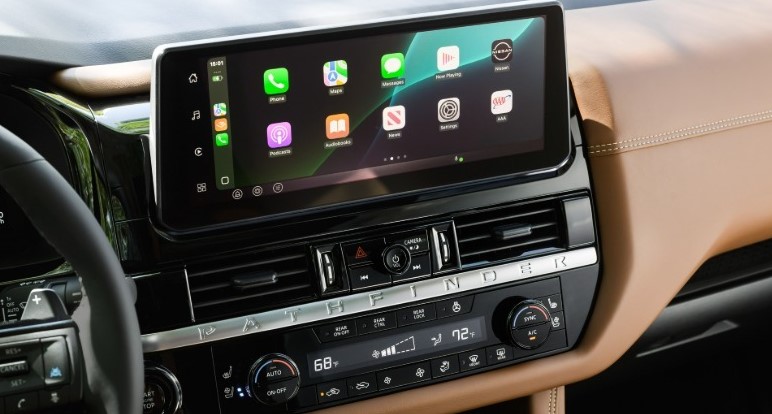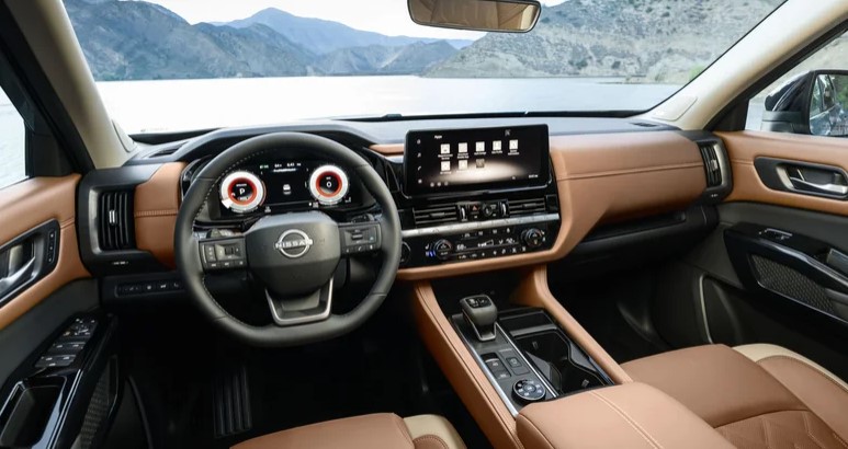 Всі нові Pathfinders отримали оновлену панель приладів, яка вміщує більший екран, а під ним викарбовано назву моделі — на випадок, якщо ви забули, за кермом чого сидите.