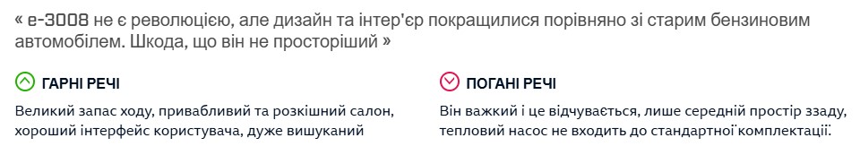 Peugeot E-3008 не пропонує революції — і це плюс. Дизайн та салон стали ще кращими, ніж раніше. Інтерфейс зрозумілий, матеріали якісні, атмосфера в салоні — приємна.