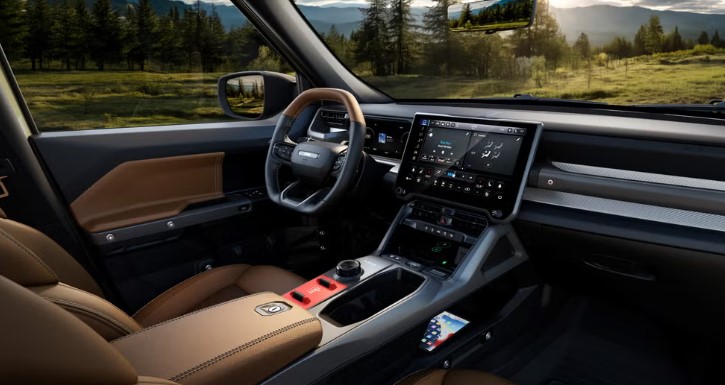 Інтер’єр Recon розроблений так, щоб бути впізнаваним, але водночас футуристичним. Горизонтальна панель приладів із ручкою для пасажира нагадує Wrangler.