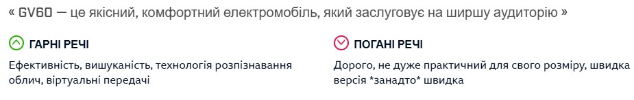 Для тих, хто хоче електрокросовер не «як у всіх», а щось більш вишукане та свіже, GV60 — дуже сильний варіант.