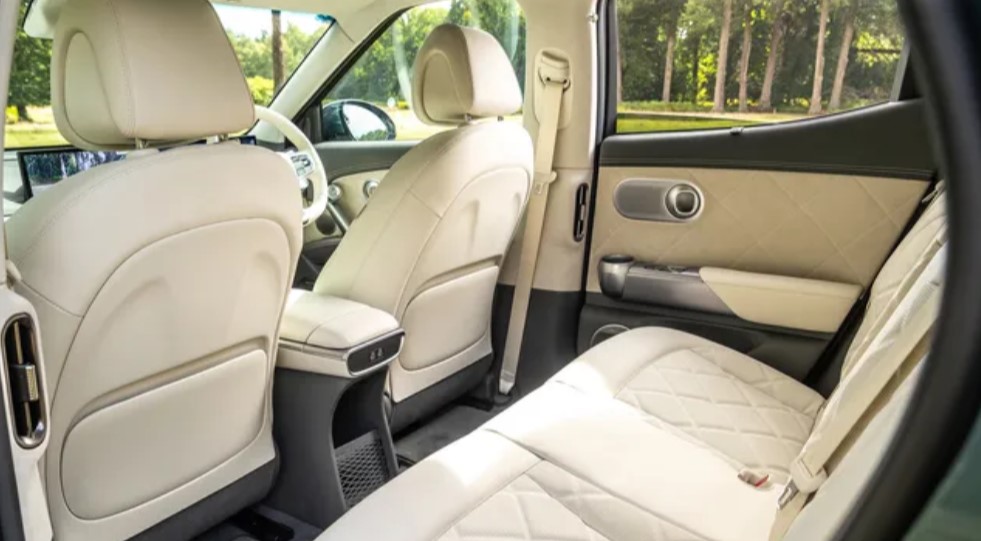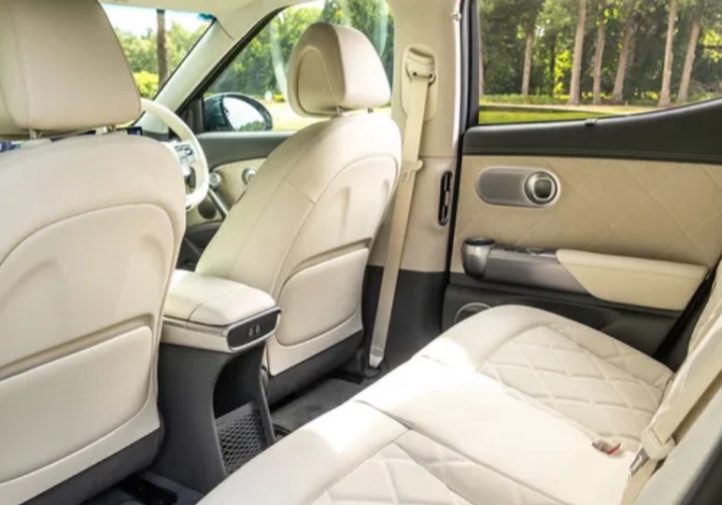 У салоні — місце для п’яти пасажирів. Попри похилу лінію даху, ззаду простору цілком достатньо. GV60 позиціонують як комфортний преміальний кросовер, тому на третій ряд сидінь тут не розраховували. Він ближчий за духом до компактного люксового купе-кросовера, а не до сімейного мінівена.