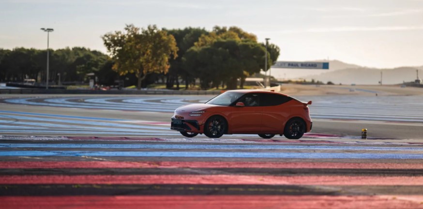 Світова прем’єра серійного GV60 Magma відбулася не на гучному автошоу в Лос-Анджелесі, а на знаменитому французькому автодромі Поль Рікар. Таким вибором місця Genesis надіслала однозначний сигнал: бренд прагне сприйматися як справжній виробник преміальних спортивних авто.